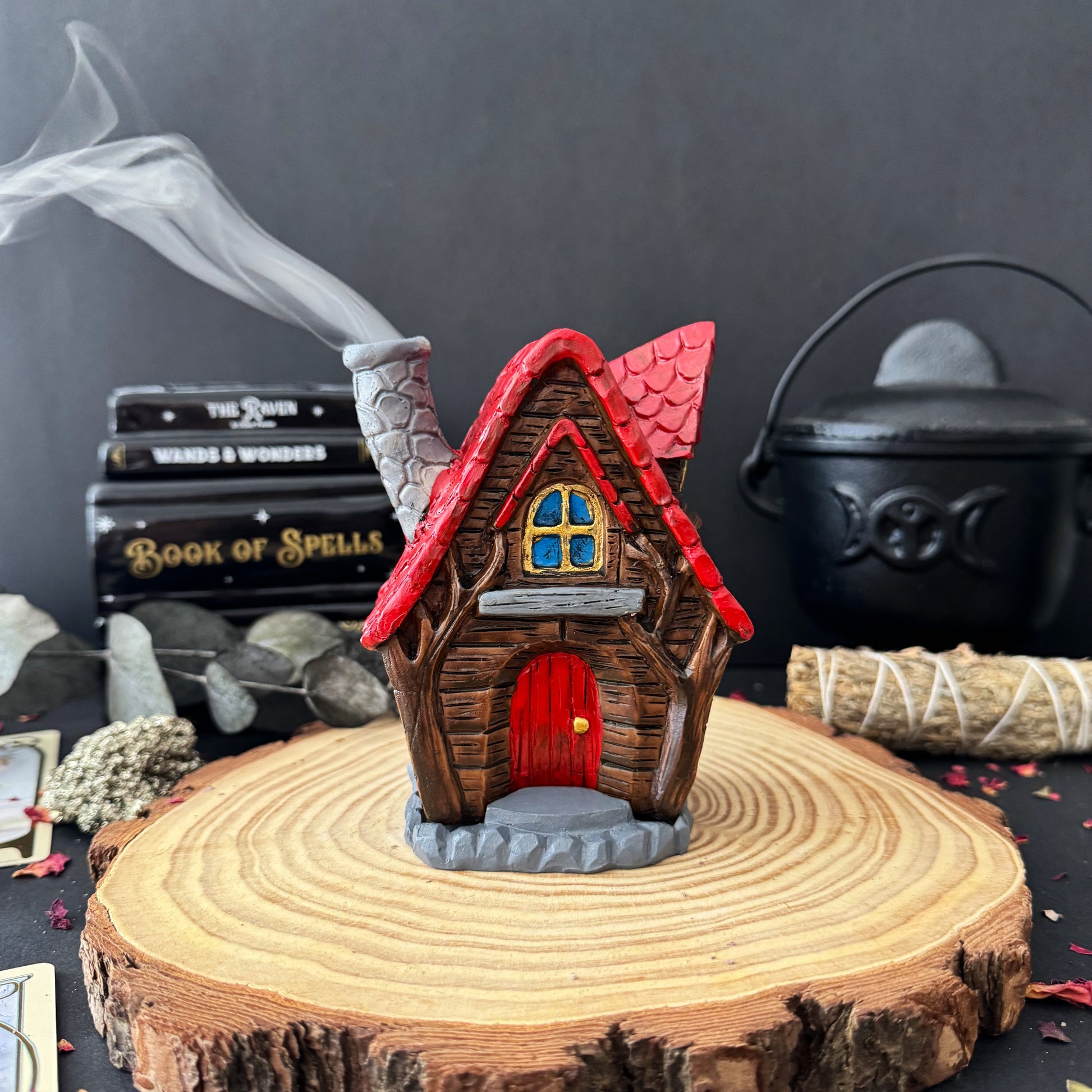 Una adorable cabaña para quemar tu incienso en cono favorito, te puedes quedar viendo como el humo sube por la chimenea de las hadas. Ha sido diseñado por la artista mágica Lisa Parker y no puede ser mas ideal para tu rinconcito especial.