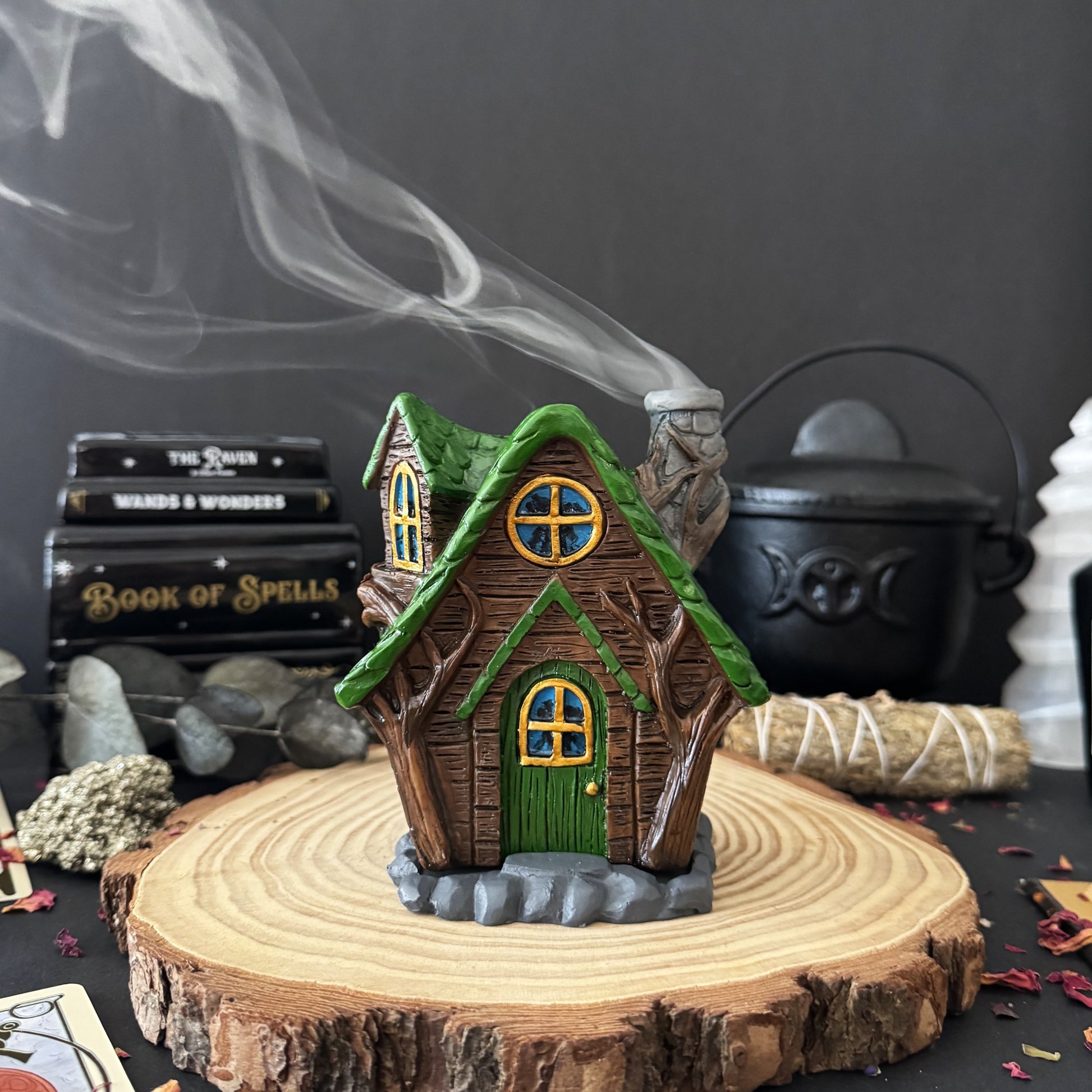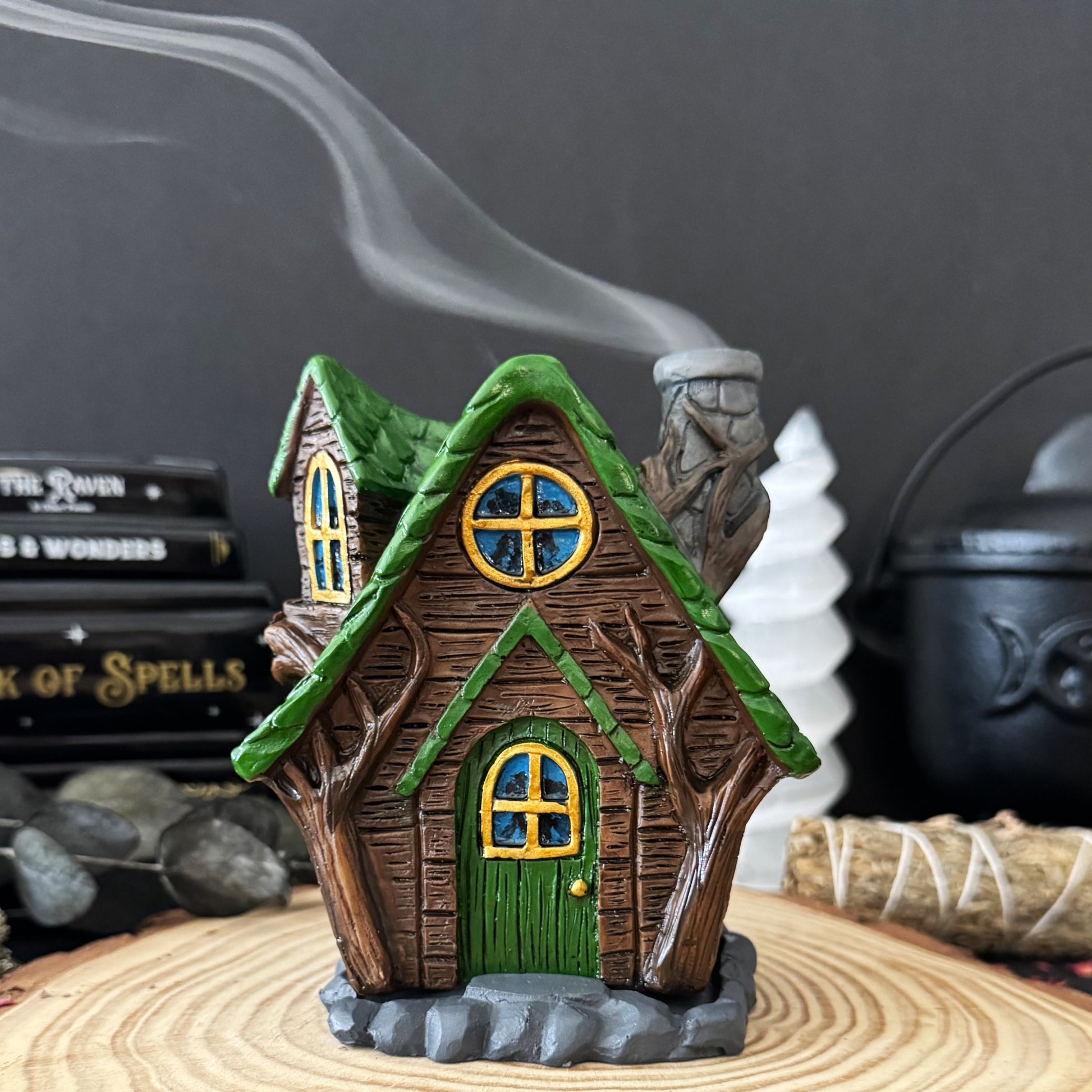 Una adorable cabaña para quemar tu incienso en cono favorito, te puedes quedar viendo como el humo sube por la chimenea de las hadas. Ha sido diseñado por la artista mágica Lisa Parker y no puede ser mas ideal para tu rinconcito especial.