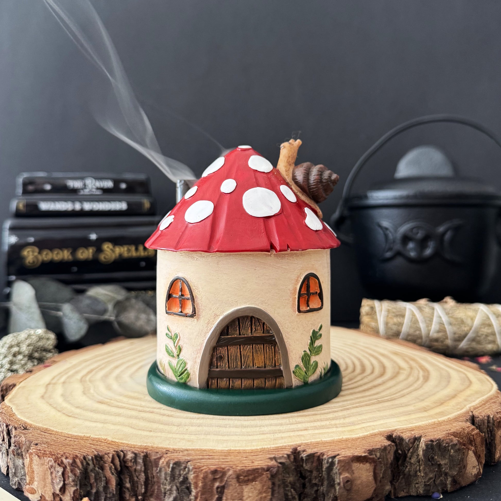Adorable casita de hongo para quemar tu cono de incienso preferido, con un estilo de casita de bosque encantado que combinara genial con tu rinconcito especial.